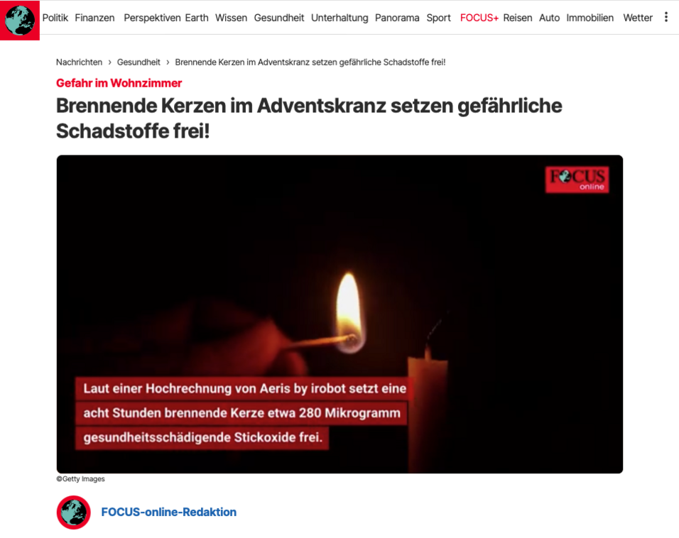 - Content-led PR campaigns: We executed three data-driven initiatives—a national “room scent survey,” an air pollution awareness ranking, and an educational piece on festive-season candle risks. These campaigns resonated with German audiences and aligned directly with Aeris’ mission to improve air quality.