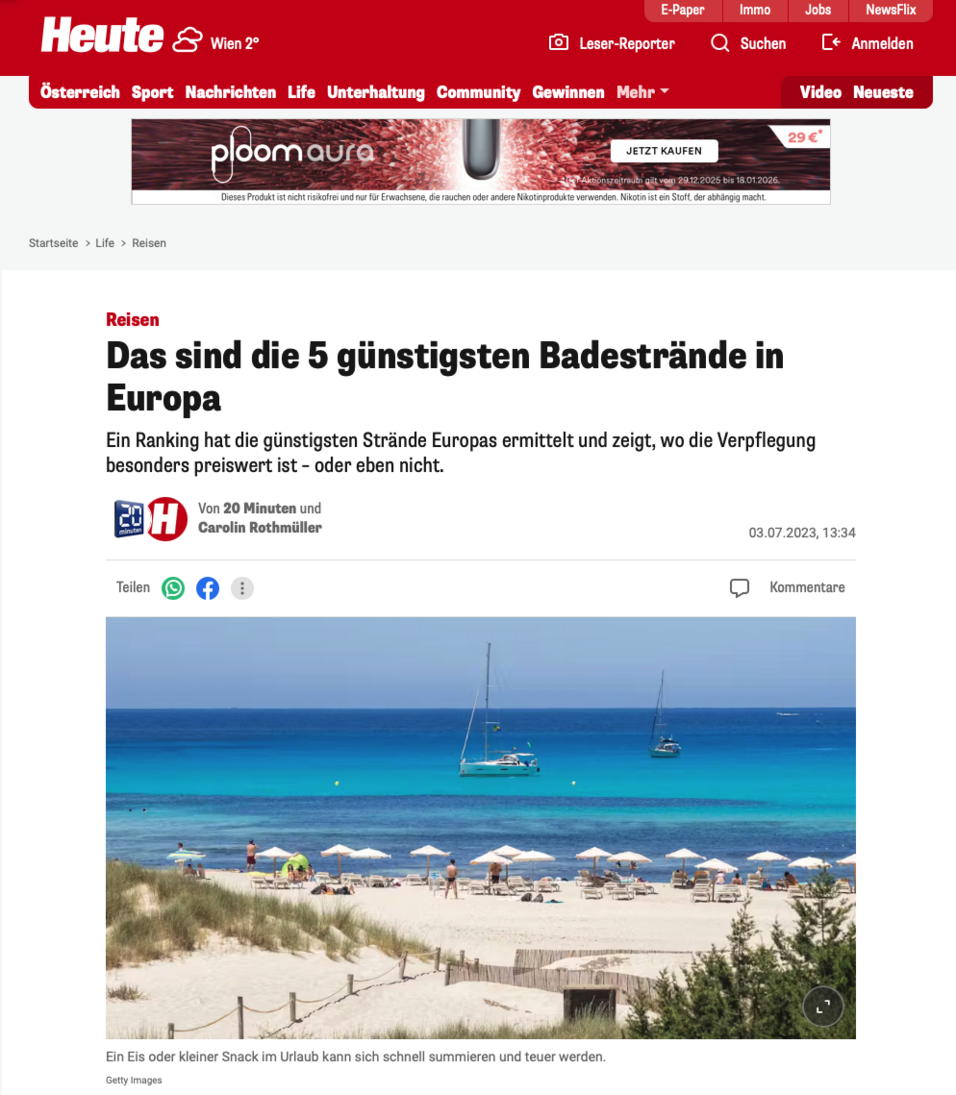 We created the “Most Affordable Beaches in Europe” campaign, a data-driven piece of evergreen content, that compares the cost of key beach essentials (ice cream, drinks, beach chair rentals, etc.) across 75 popular beach destinations. The goal: to help travelers plan affordable getaways while providing journalists with timely, consumer-relevant content.